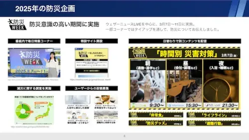 防災・減災情報を強化したタイアップ資料。高関心層への訴求を通じて防災意識を喚起し、企業の社会貢献活動にも最適です。
