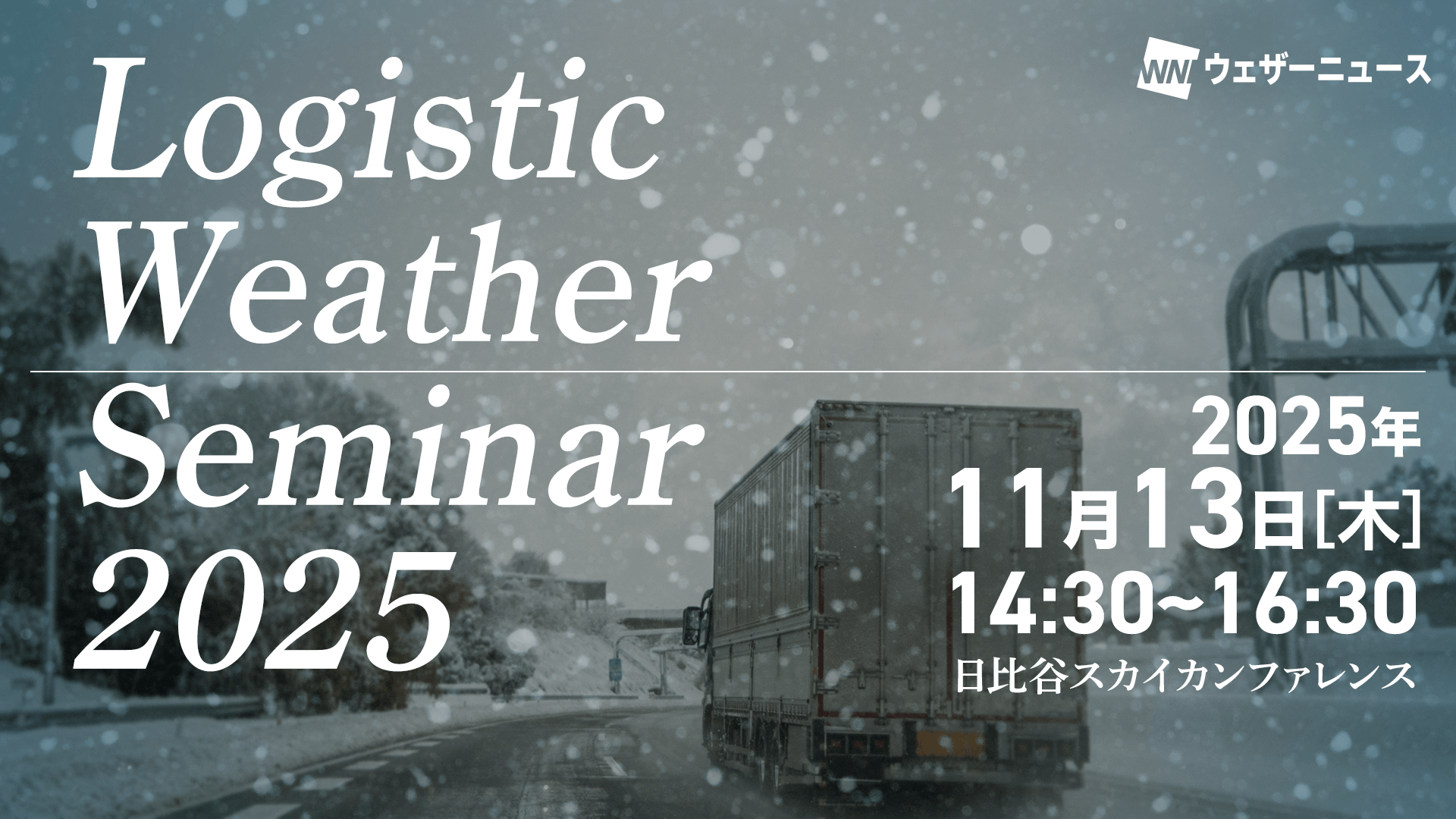 ここ最近、社会に大きな影響を与える極端な気象が頻繁に発生しています。また、物流業界では2024年問題以降、物流関連法の改正をはじめとするさまざまな内外の要因により、喫緊の課題解決が求められています。 こうした背景から、昨年12月に物流事業者、道路・鉄道などの交通インフラ事業者、そして当社の3者で、それぞれの課題や解決策について意見交換を行う場として「Logistic Weather Seminar」を開催しました。 そしてこの度、「Logistic Weather Seminar 2025」を昨年に引き続き開催します。今回は、物流事業者、荷主事業者、交通インフラ事業者に登壇いただき、大雪時に高速道路を安全に走行するために必要な知識と情報を学べるセミナーを実施します。
