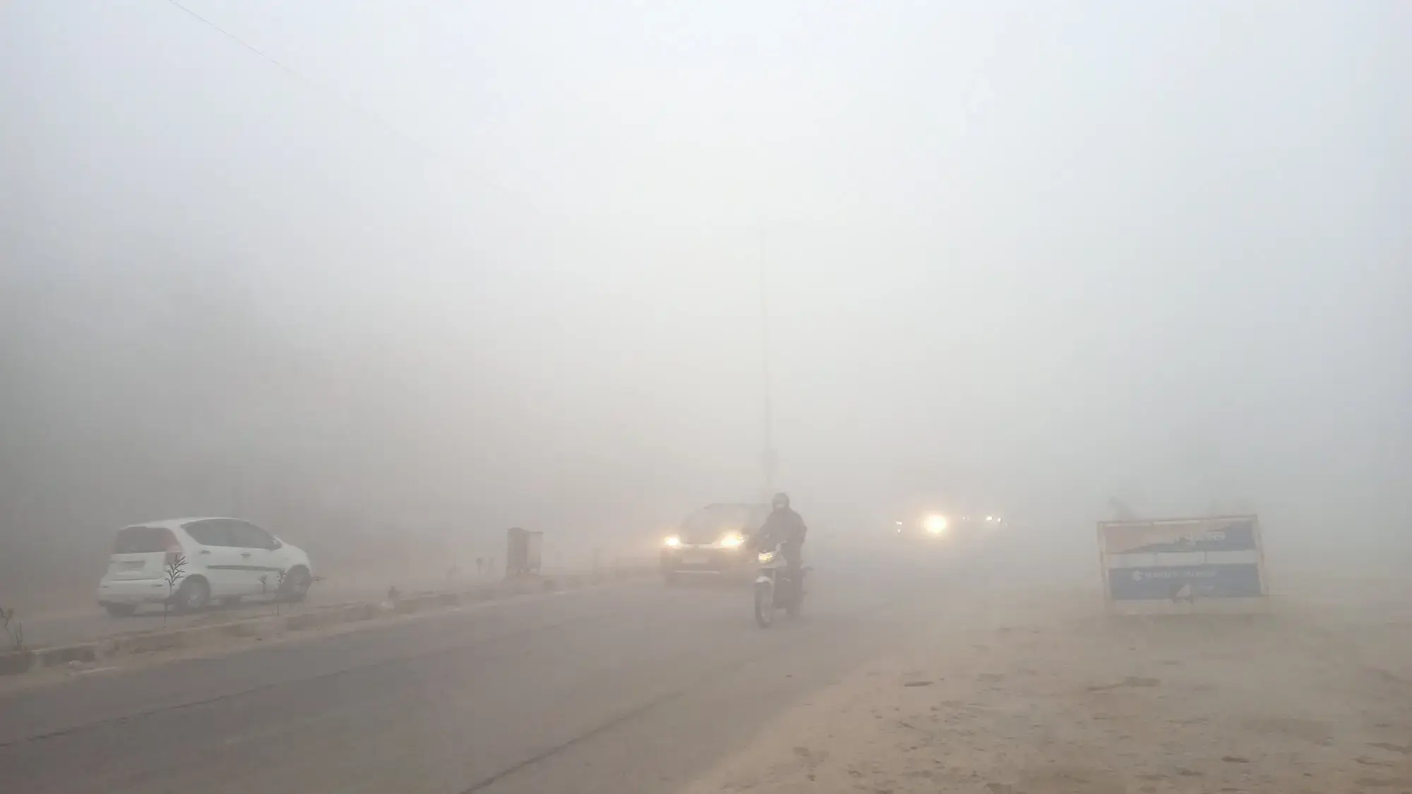 大気の乾燥度や砂漠地帯が近いこともあり、また、家々や工場からの煙が寒候期に顕著であることから、視程障害現象は通年で毎日生じています。